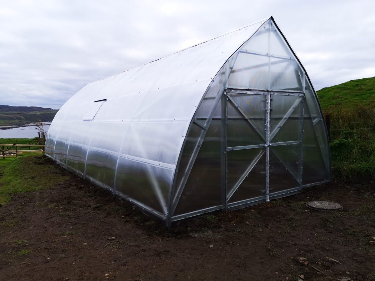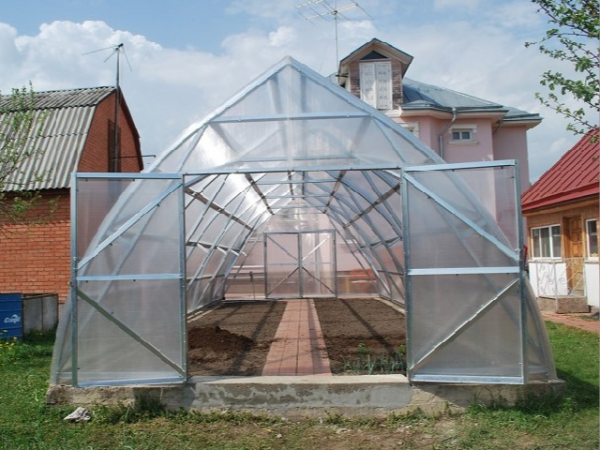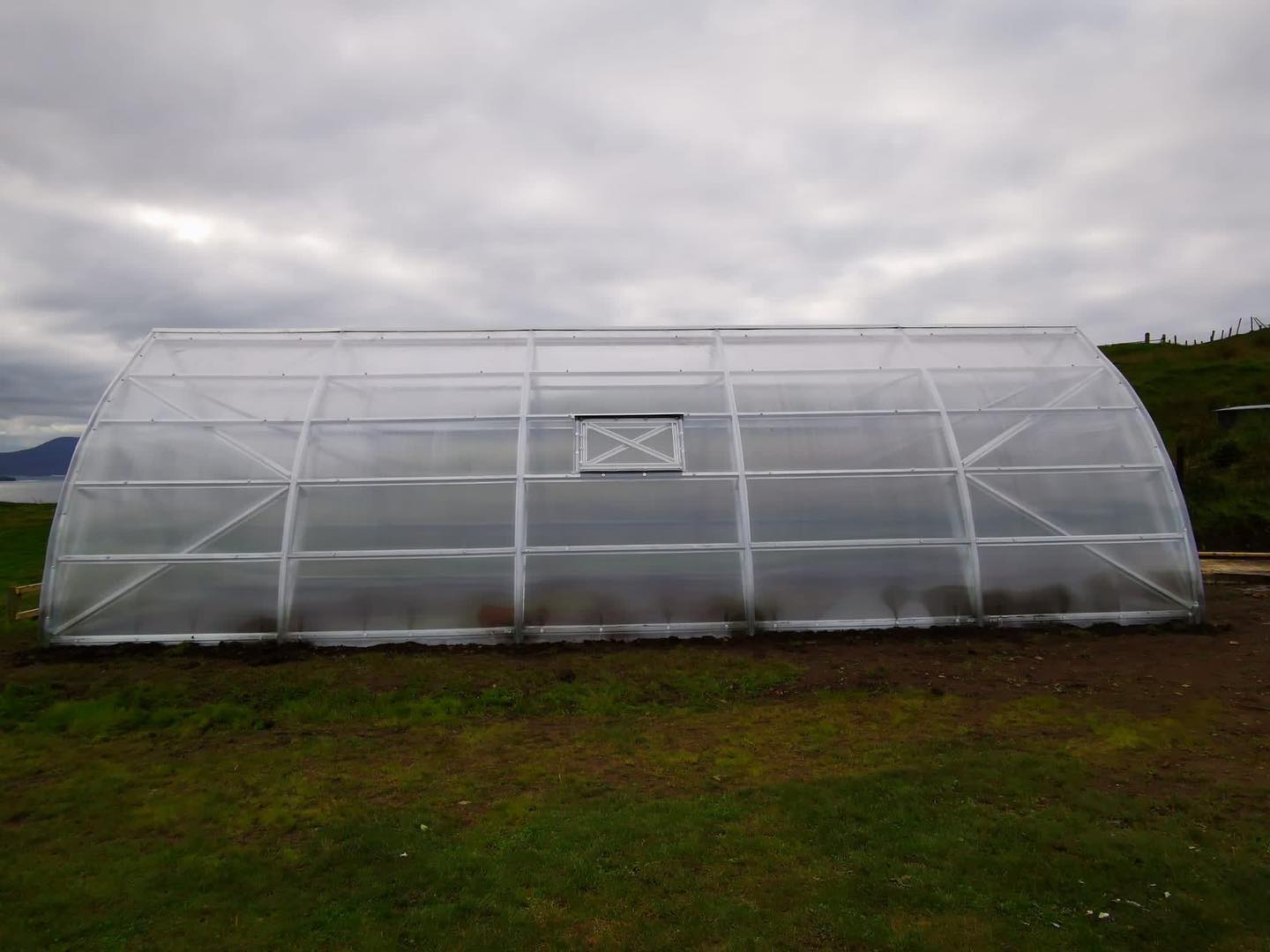 Greenhouse base part width 4.2 m, length depending on desire of buyer starting from 4.2 m and height 3.18m. Door opening width 1.98 m and height 1.93 m.
