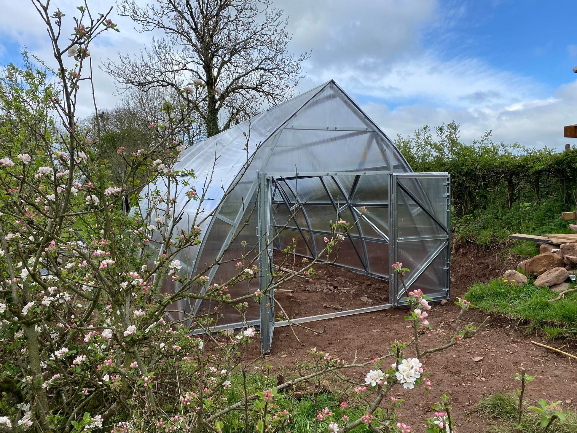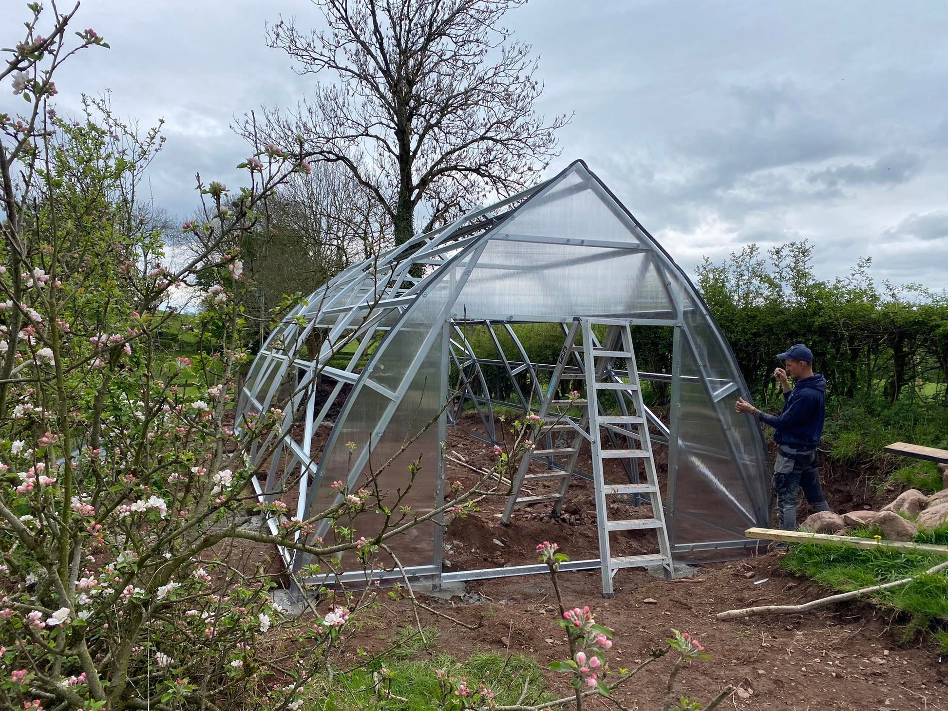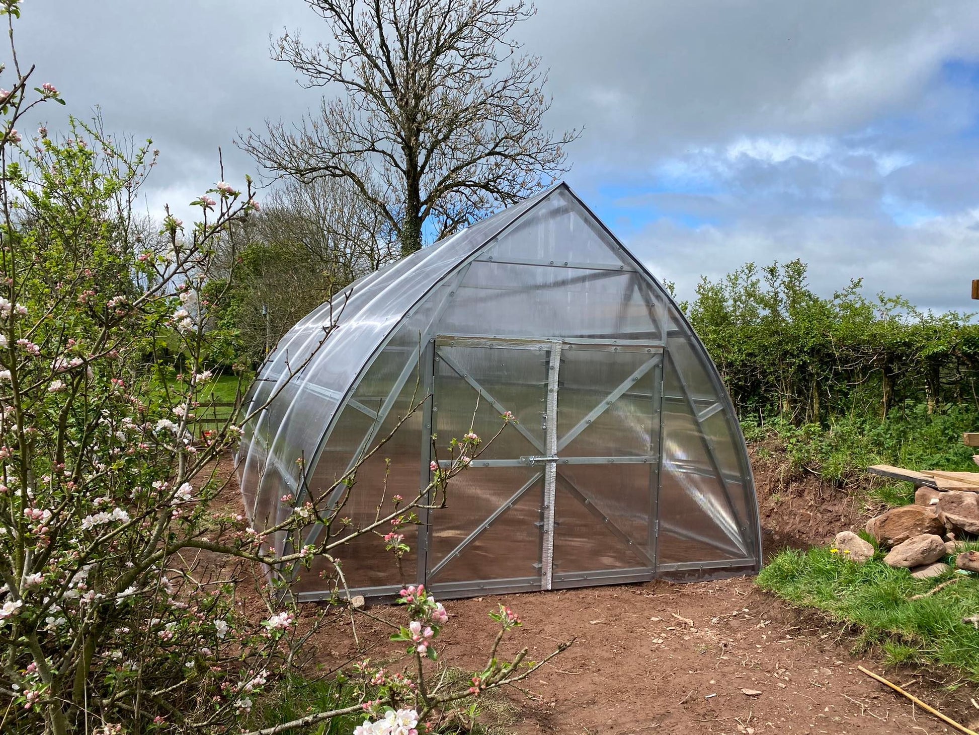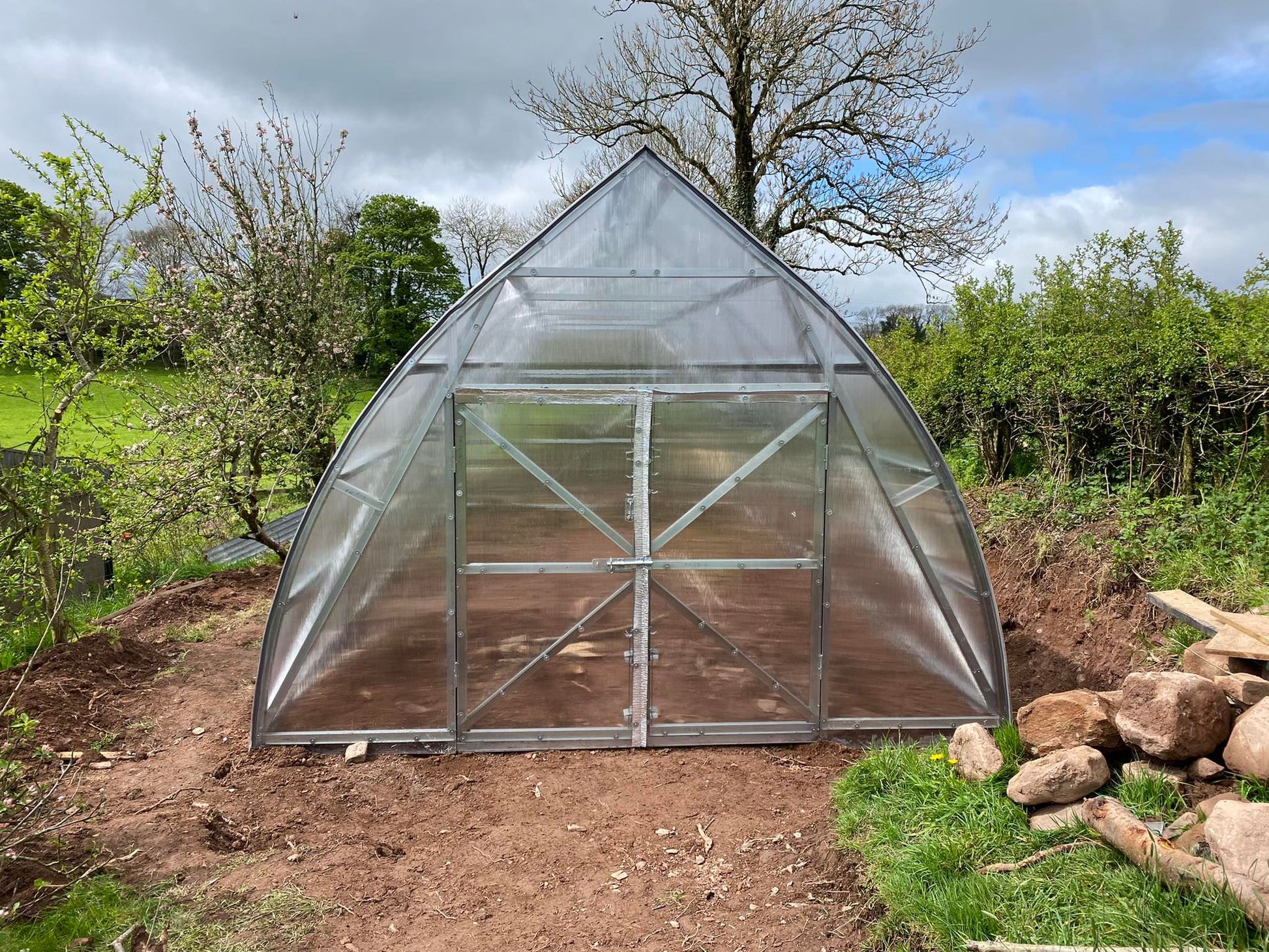 Greenhouse base part width 4.2 m, length depending on desire of buyer starting from 4.2 m and height 3.18m. Door opening width 1.98 m and height 1.93 m.