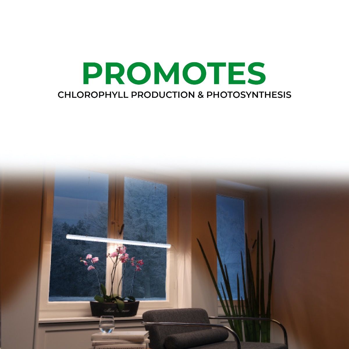 - Promotes chlorophyll production & photosynthesis