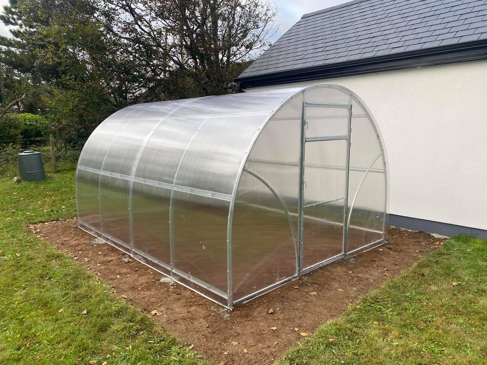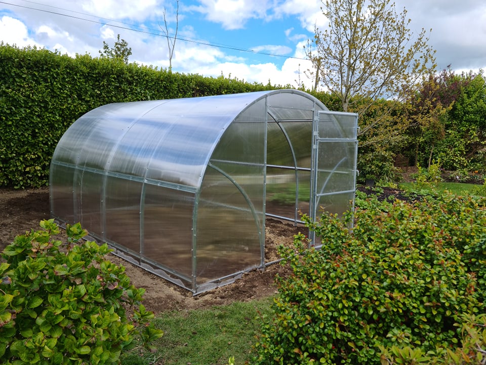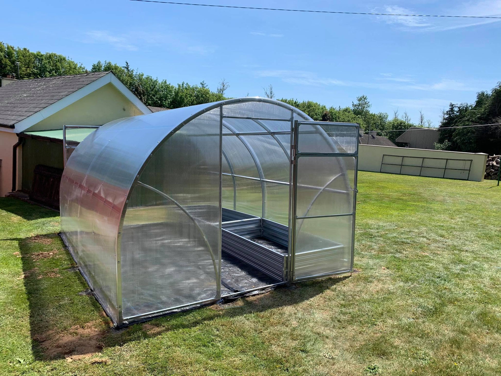 Greenhouse dimensions: width 3 m, length 4 m and height 2.1 m. Area 12 m².