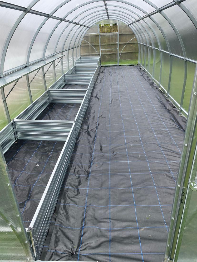 Greenhouse has two door openings and two small windows in opposite ends. The frame profile is square galvanised steel pipe, 40×20 mm, which is why the installation is much easier and faster compared to other greenhouse models.