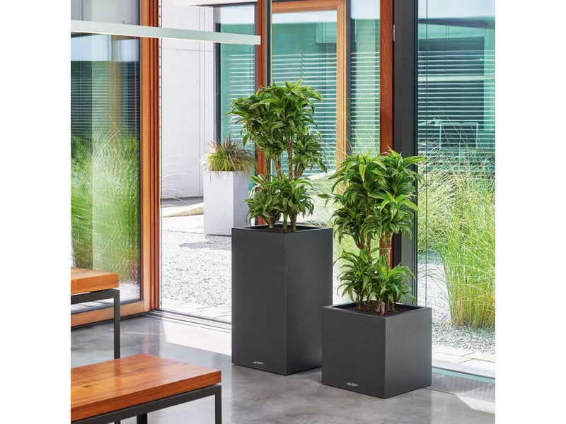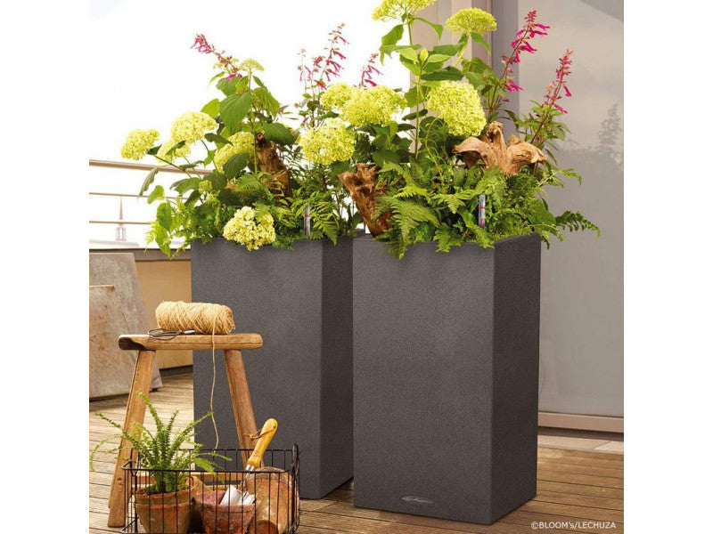 If you like a clear design you will love the CANTO Stone. The rough natural stone look in three different colors creates a wonderful contrast to lush greens and colorful flowers. The CANTO Stone cube and column planters have the same dimensions, so you can easily use the same planter liner in both models.