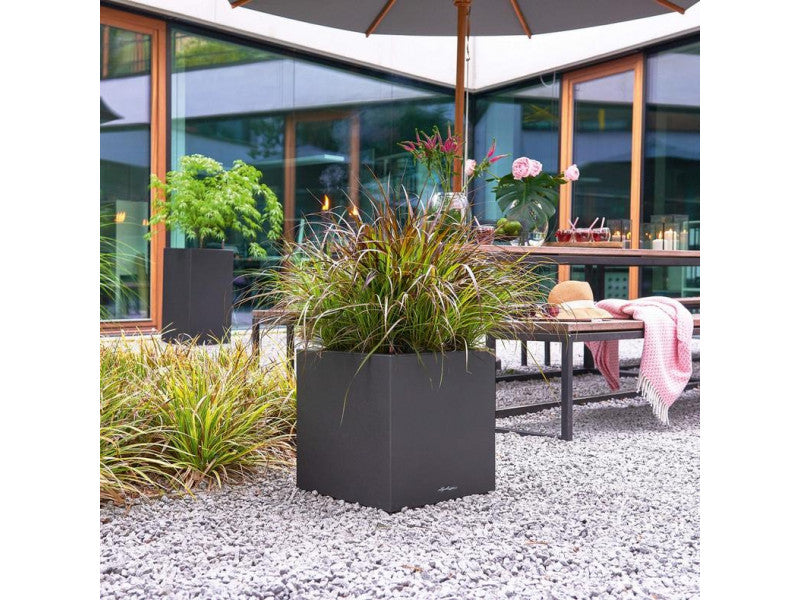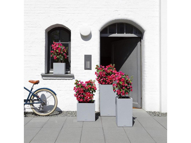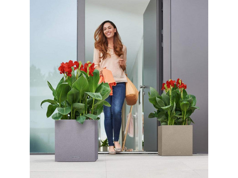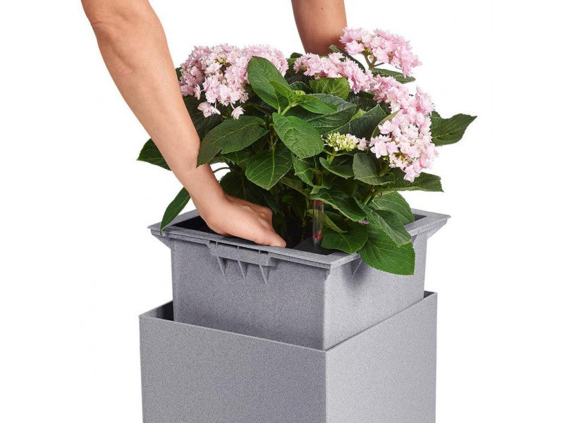 If you like a clear design you will love the CANTO Stone. The rough natural stone look in three different colors creates a wonderful contrast to lush greens and colorful flowers. The CANTO Stone cube and column planters have the same dimensions, so you can easily use the same planter liner in both models.
