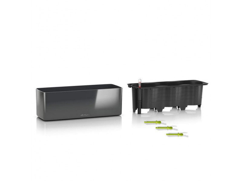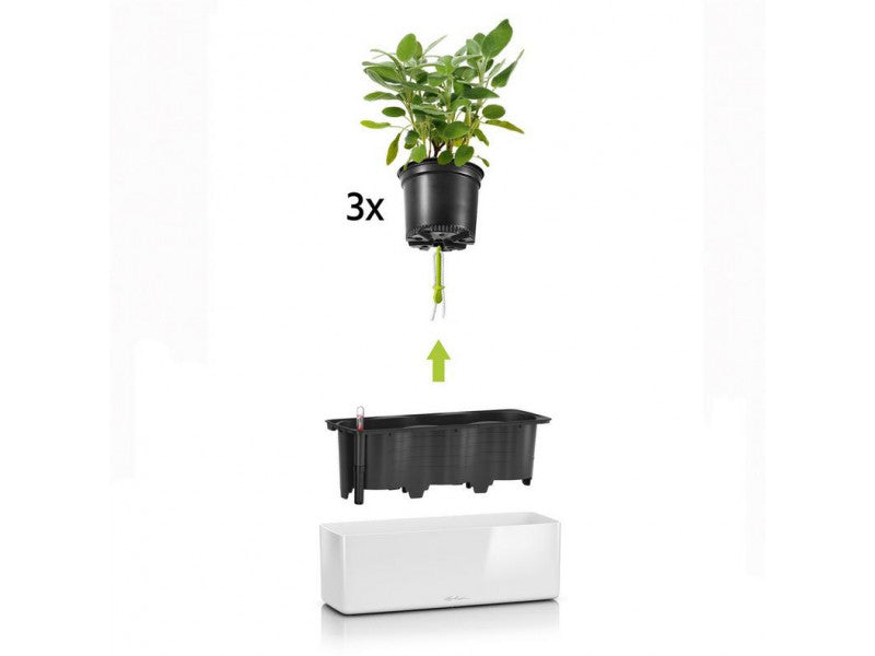 The CUBE Glossy Triple offers plenty of space for flowers, herbs and small shrubs, and sets noble accents for a shiny living feeling. With its elongated shape, the container can be used to make the ideal herb garden on the windowsill or a succulent garden on the living room shelf, or can be equipped with flowering plants as an unusual table decoration.