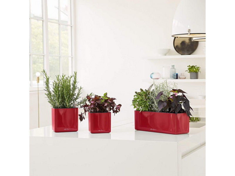 LECHUZA CUBE GLOSSY TRIPLE SCARLET RED HIGH-GLOSS