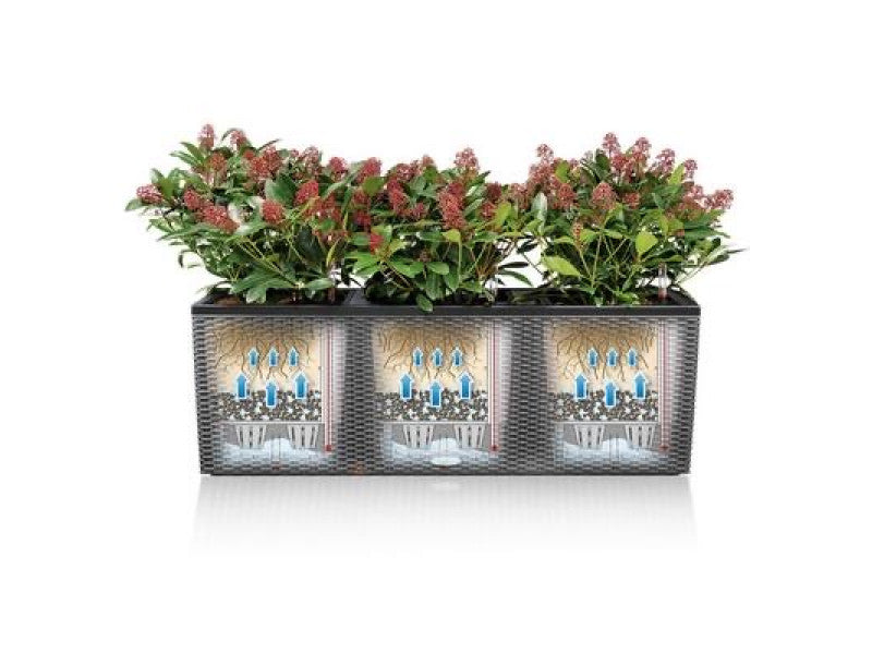 Adding greenery to the balcony has never been easier. CUBE Color Triple offers room for three grow pots and is easy to use without repotting. This speeds up planting decorative flowering plants or practical herbs. And thanks to the LECHUZA wick system they receive the right amount of water for many weeks.