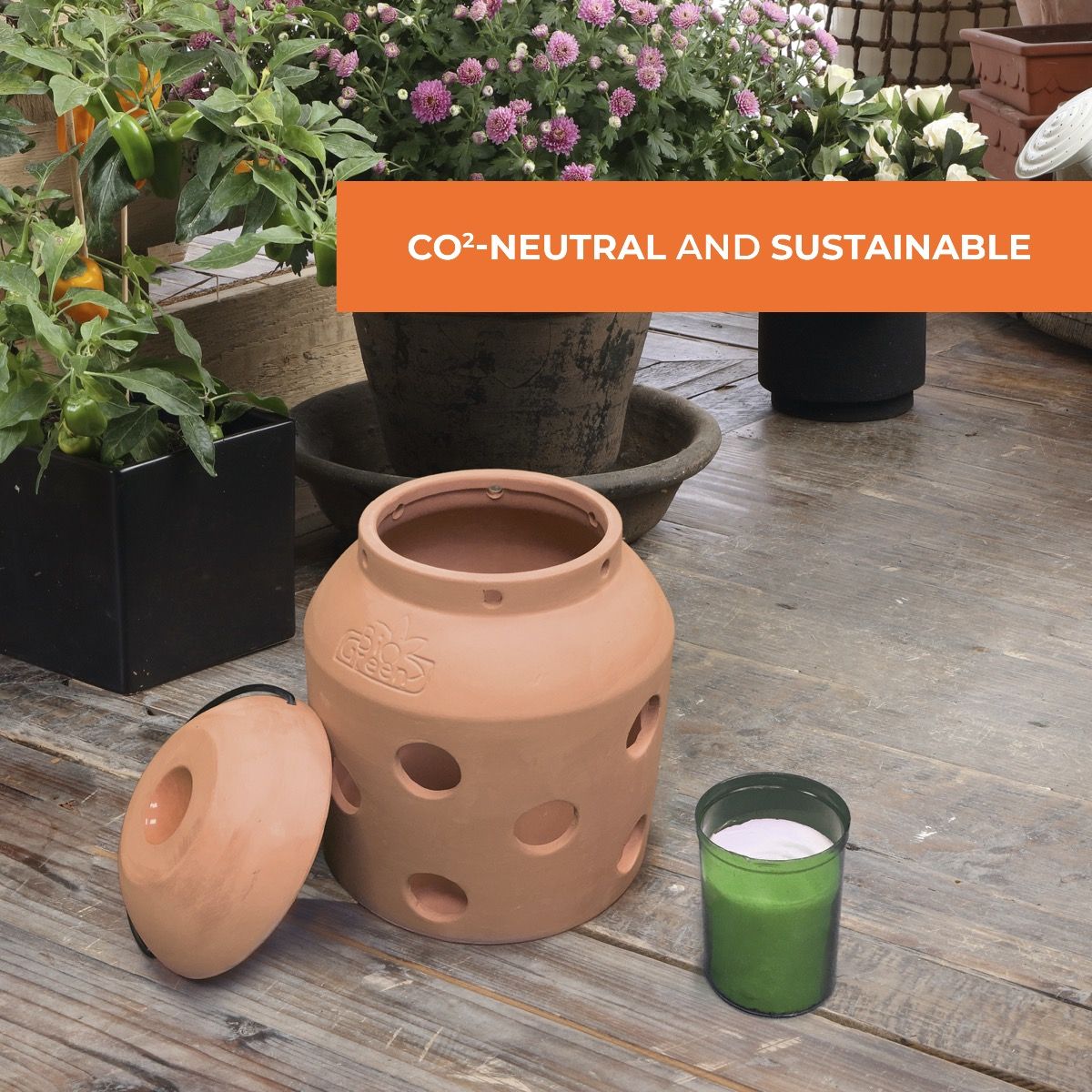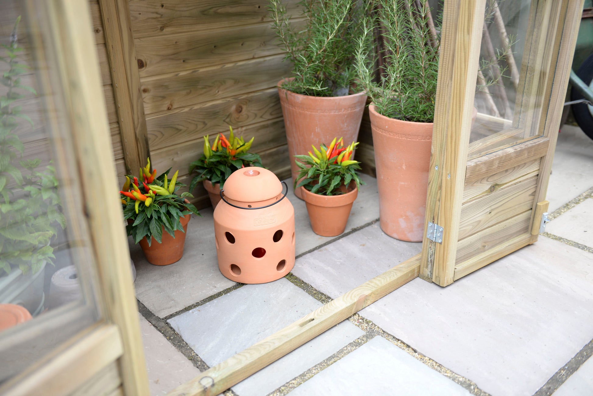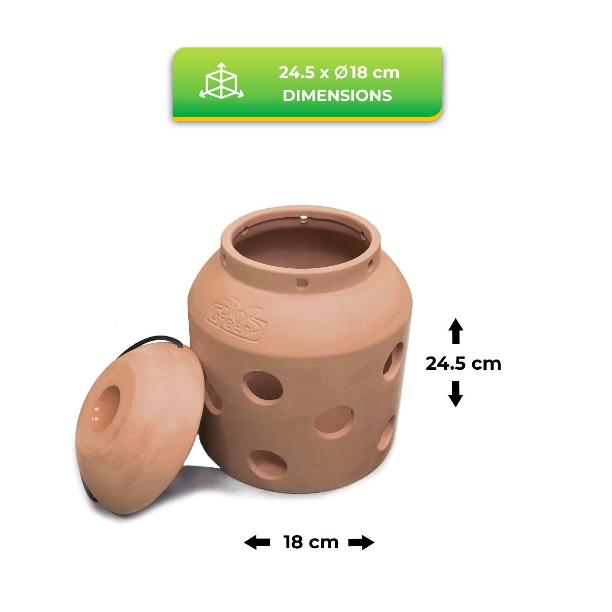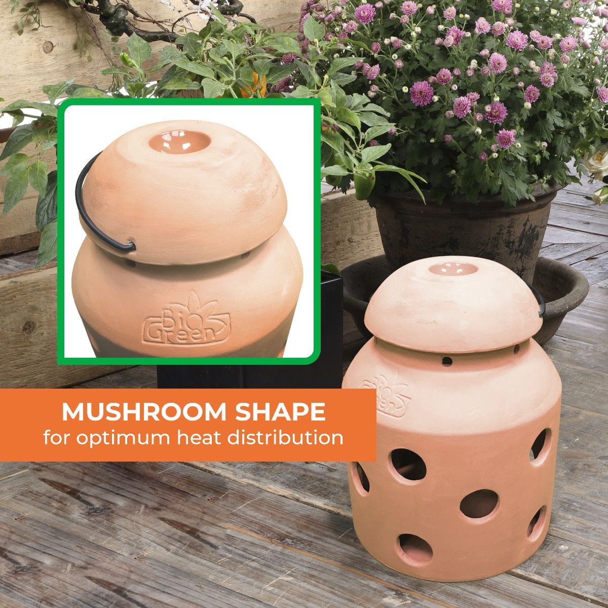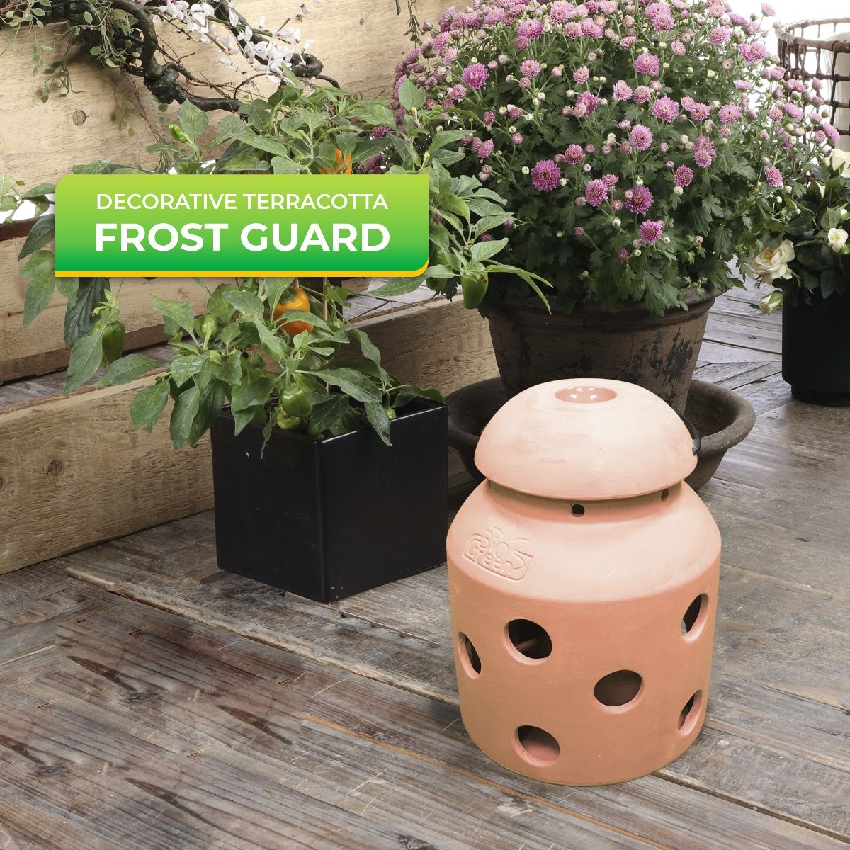 The FireFly decorative frost guard candle holder is made of terracotta. The candles are specially developed for frost protection, and provide sufficient heat to keep small greenhouses and cold frames frost-free.