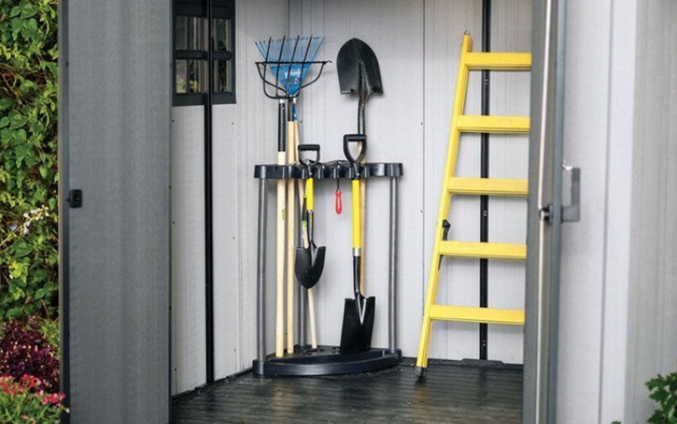 Make the most of your space and keep your tools neat and organised with our Corner Tool Rack. Its front-loading slots allow for easy storage of large tools and eliminate the problem of taking or returning long-handle tools when kept in a shed or any place with a low ceiling, its corner design keeps everything accessible yet out of the way.