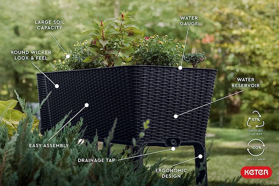 Unlock endless gardening possibilities with our spacious 120 L raised garden bed. Perfect for growing veggies, herbs, and more, it comes in an attractive anthracite colour and features an ergonomic elevated design. Say goodbye to bending over, and embrace convenient gardening with a natural round rattan texture.