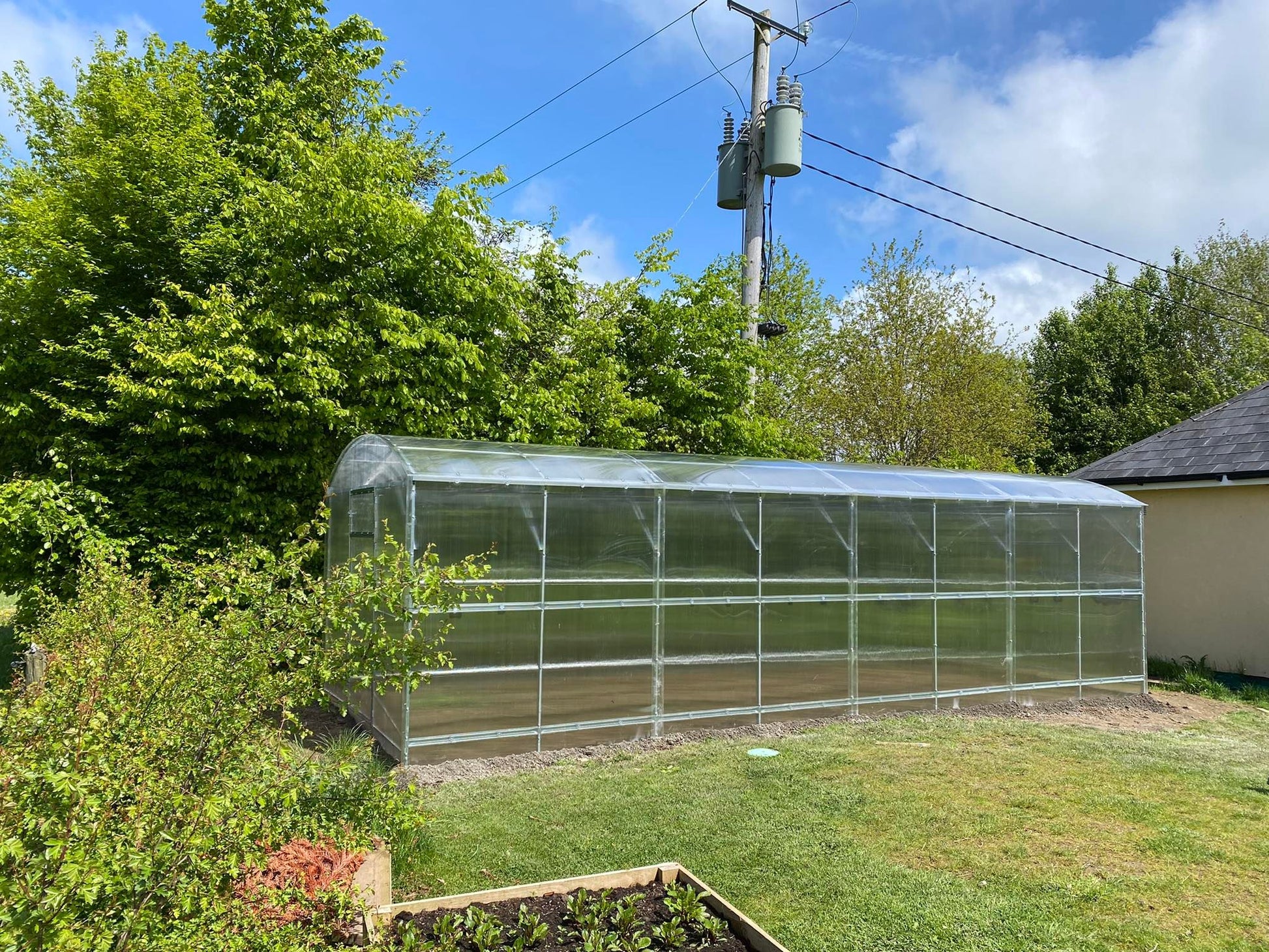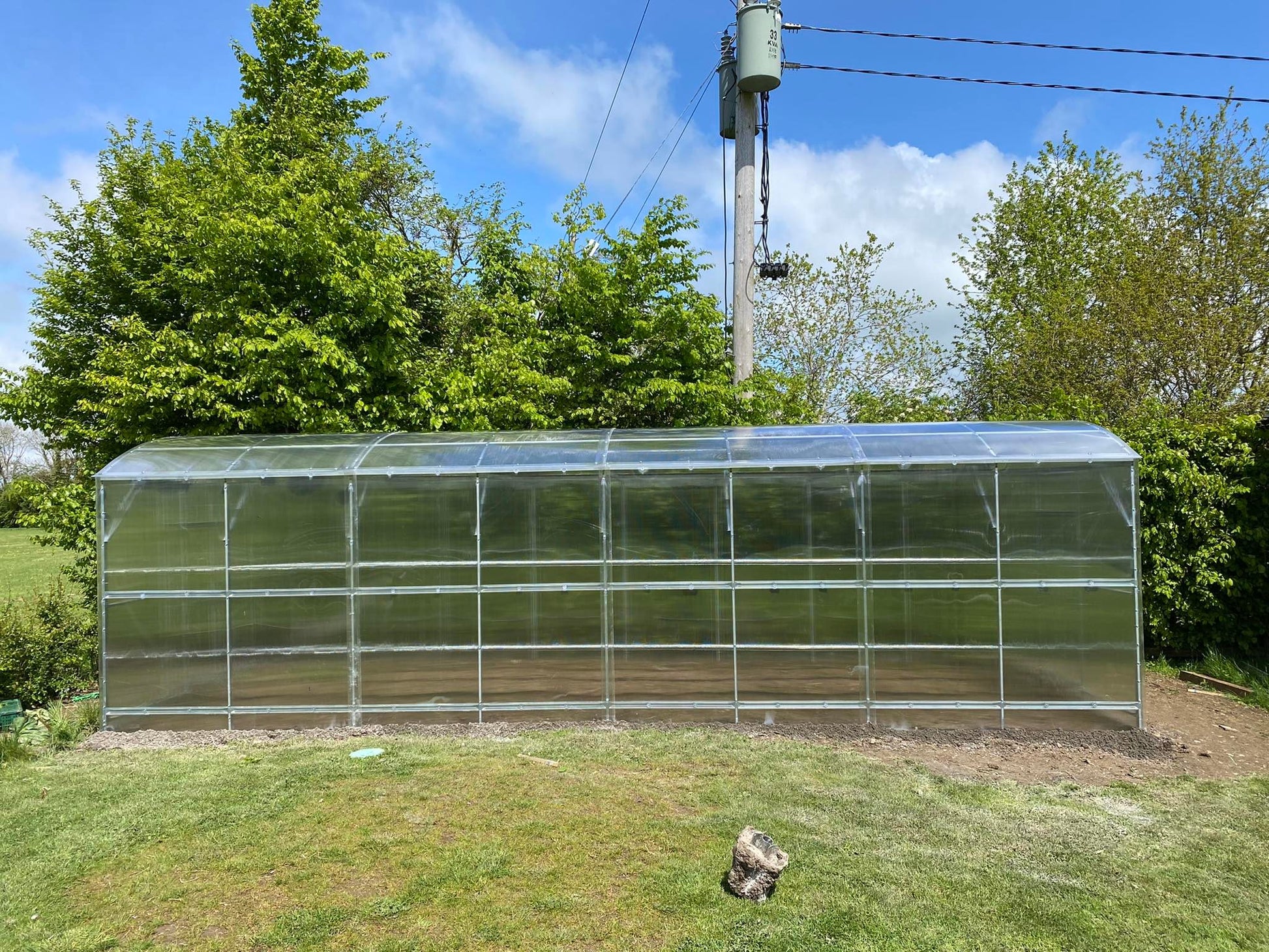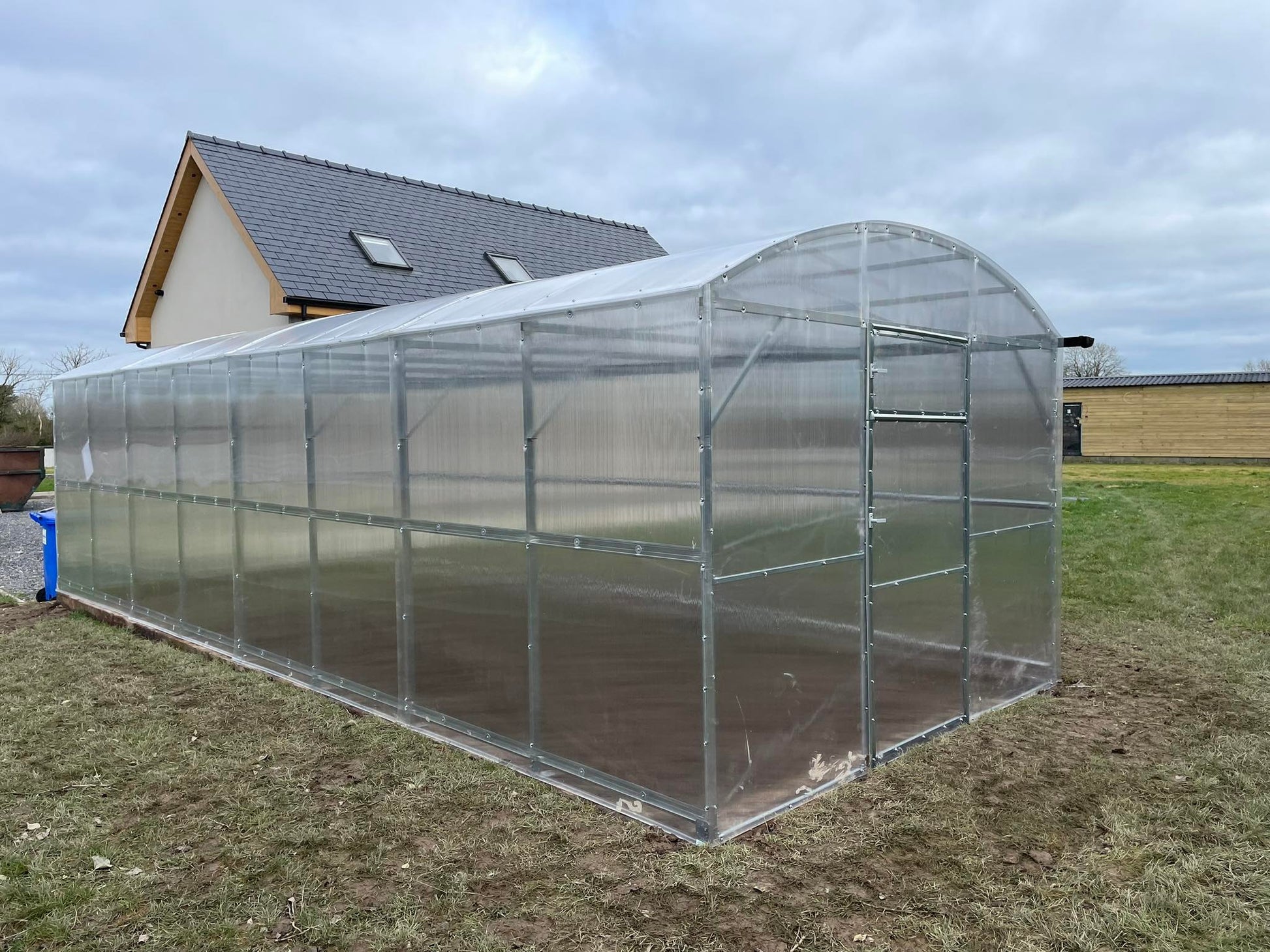 Greenhouse dimensions: width 3 m, length 8 m and height 2.4 m. Area 24 m².