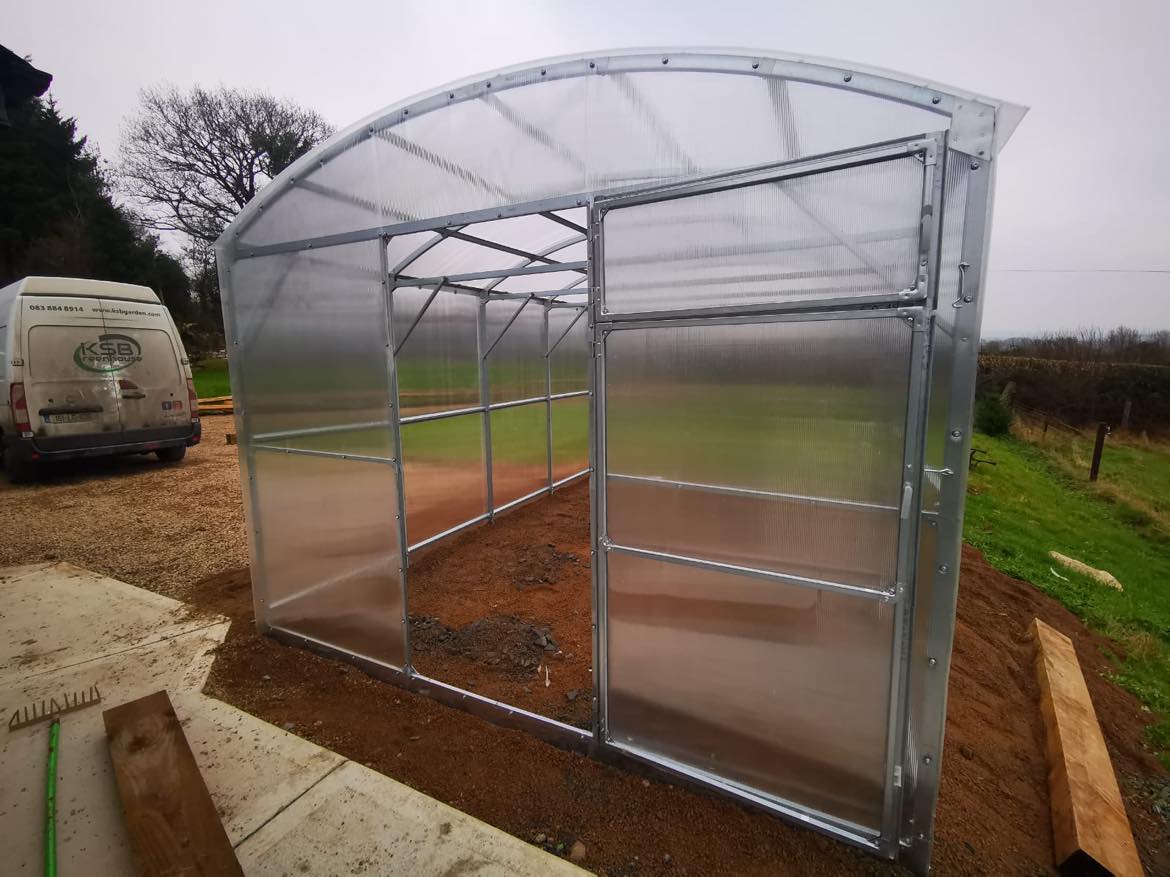 Greenhouse dimensions: width 3 m, length 12 m and height 2.4 m. Area 36 m².
