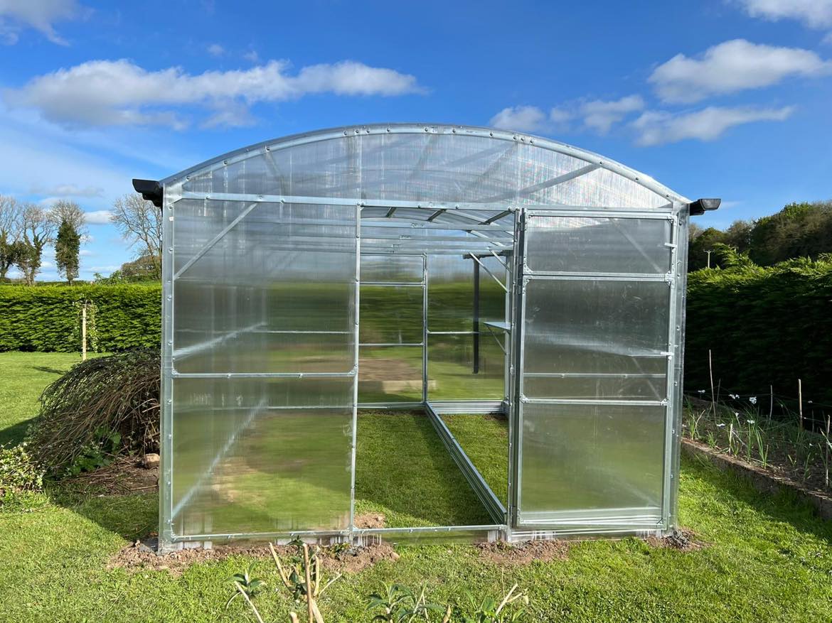 Greenhouse has two door openings and two small windows in opposite ends. The frame profile is square galvanised steel pipe, 40×20 mm, which is why the installation is much easier and faster compared to other greenhouse models.