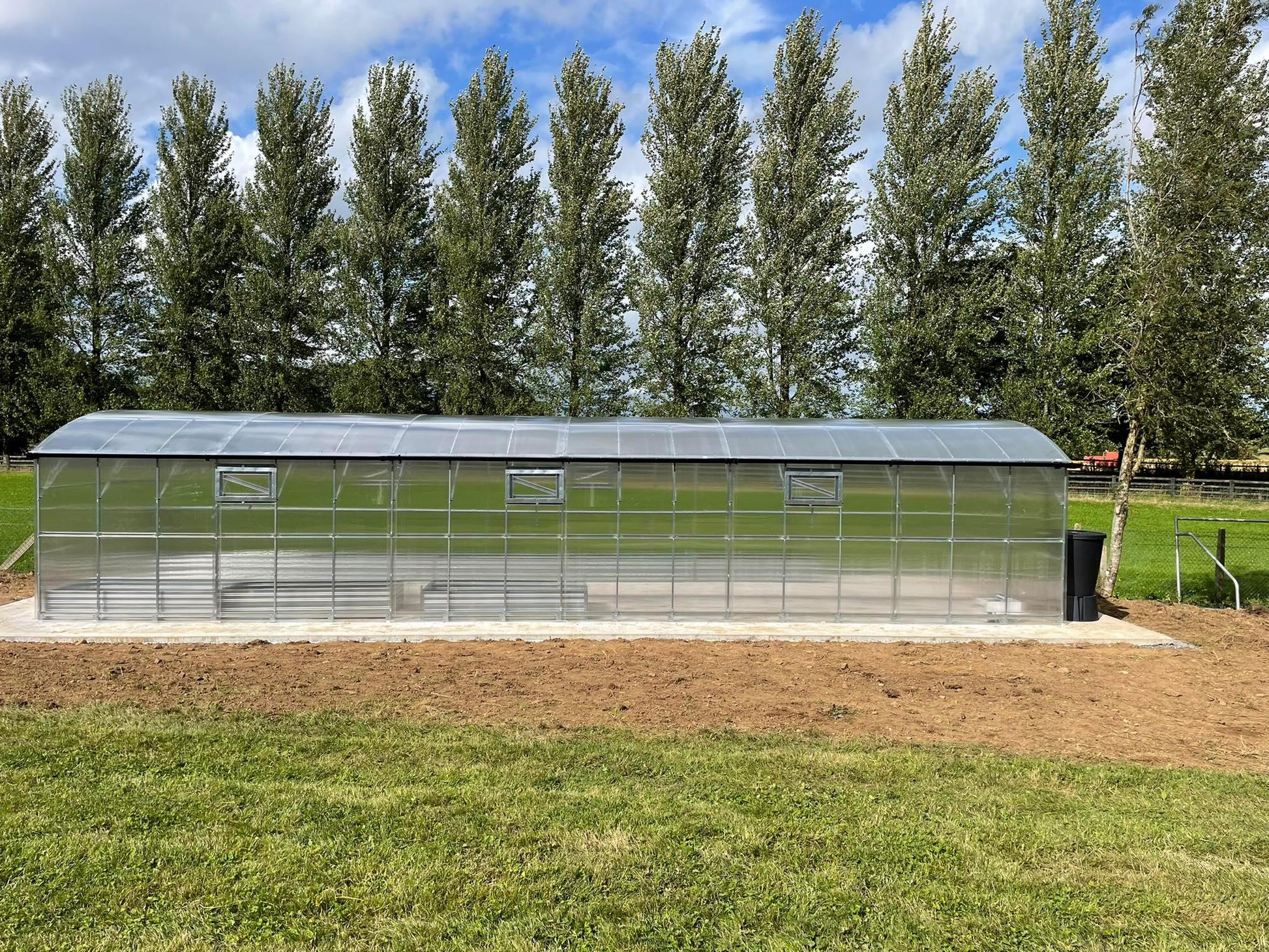 Greenhouse has two door openings and two small windows in opposite ends. The frame profile is square galvanised steel pipe, 40×20 mm, which is why the installation is much easier and faster compared to other greenhouse models.