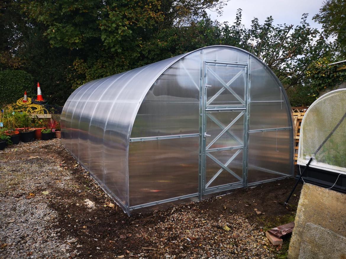 Greenhouse has two door openings and two small windows in opposite ends, the width of the doors is 805 mm.
