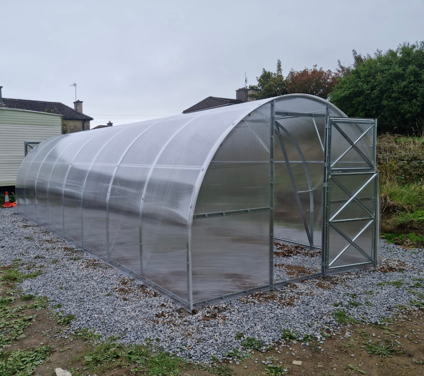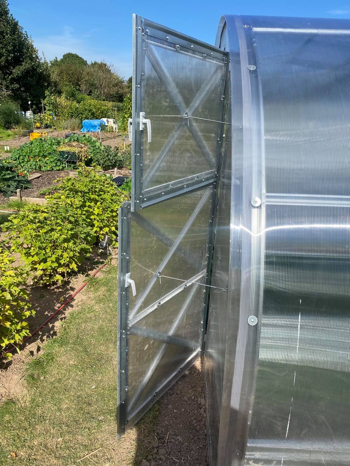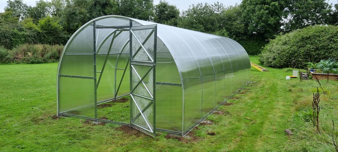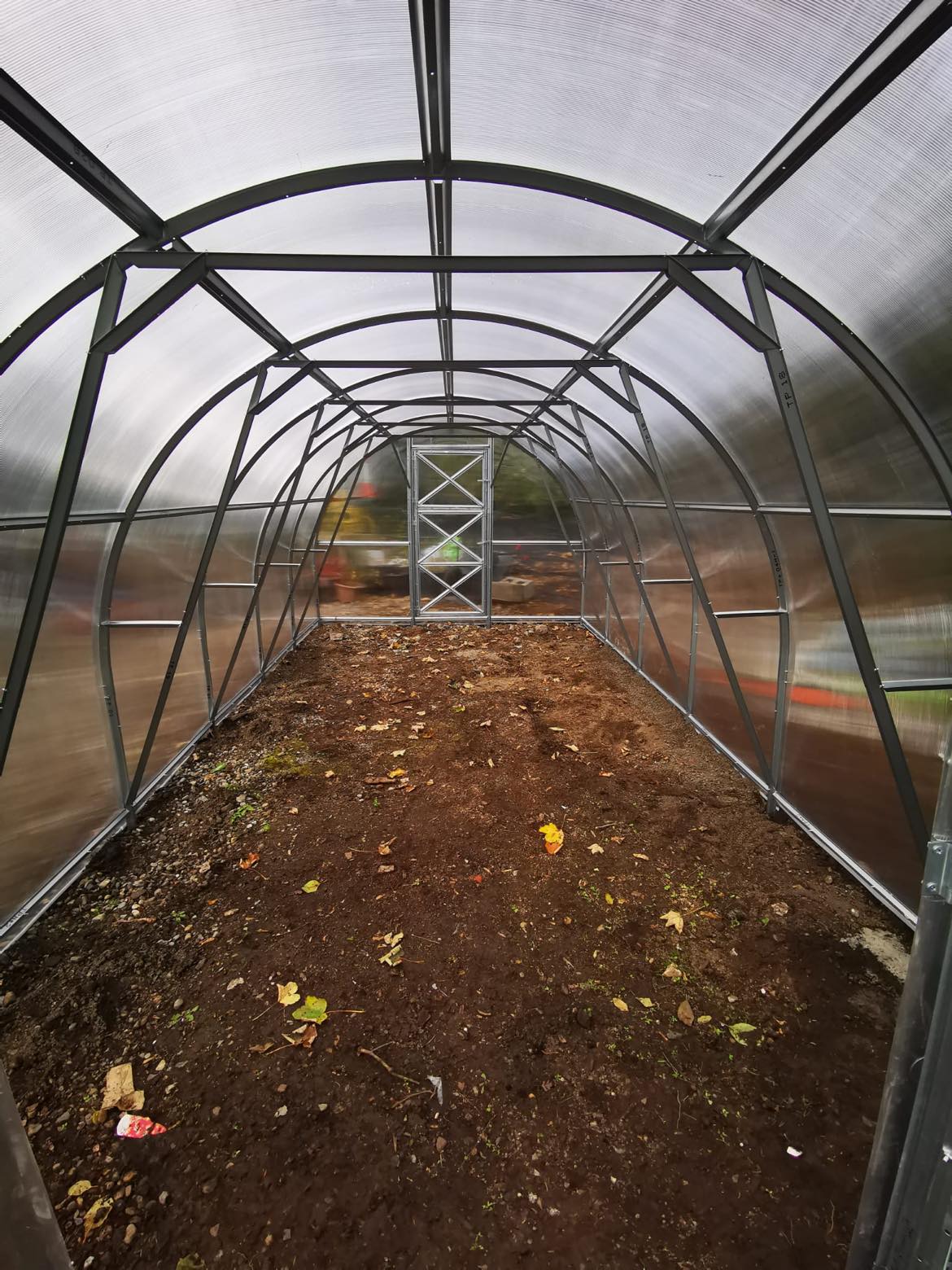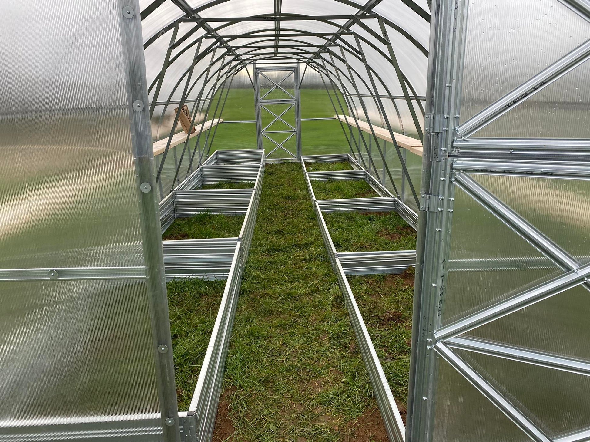 Greenhouse has two door openings and two small windows in opposite ends, the width of the doors is 805 mm.