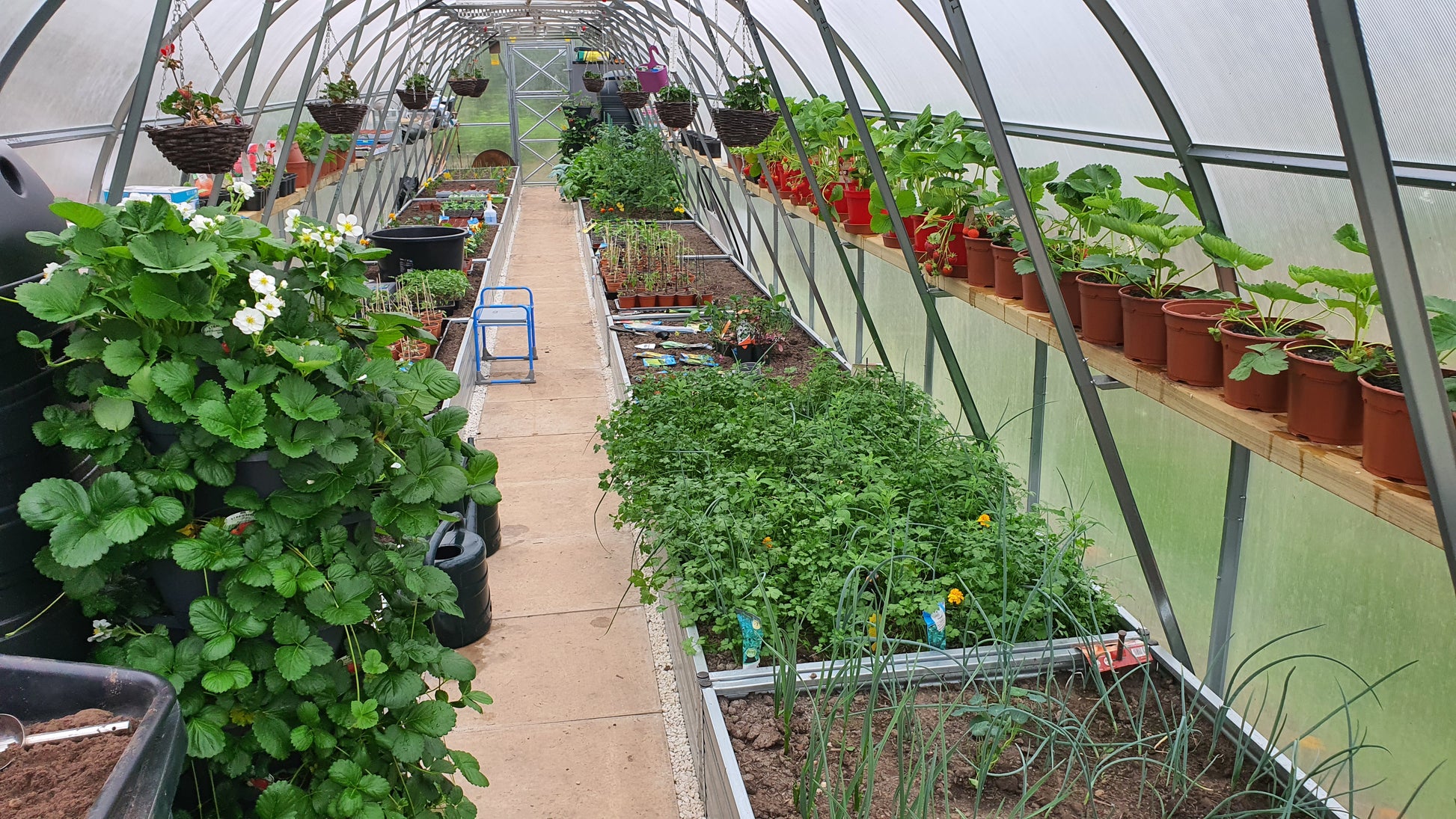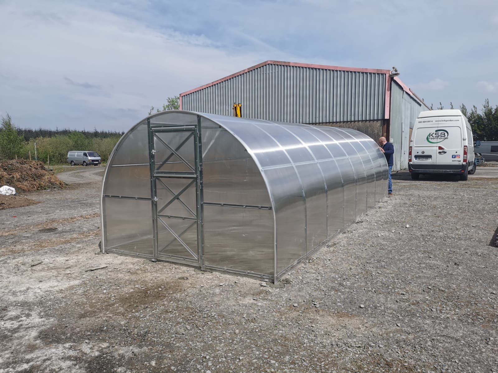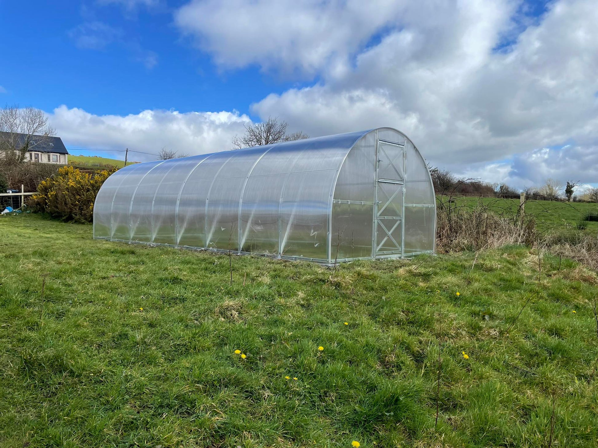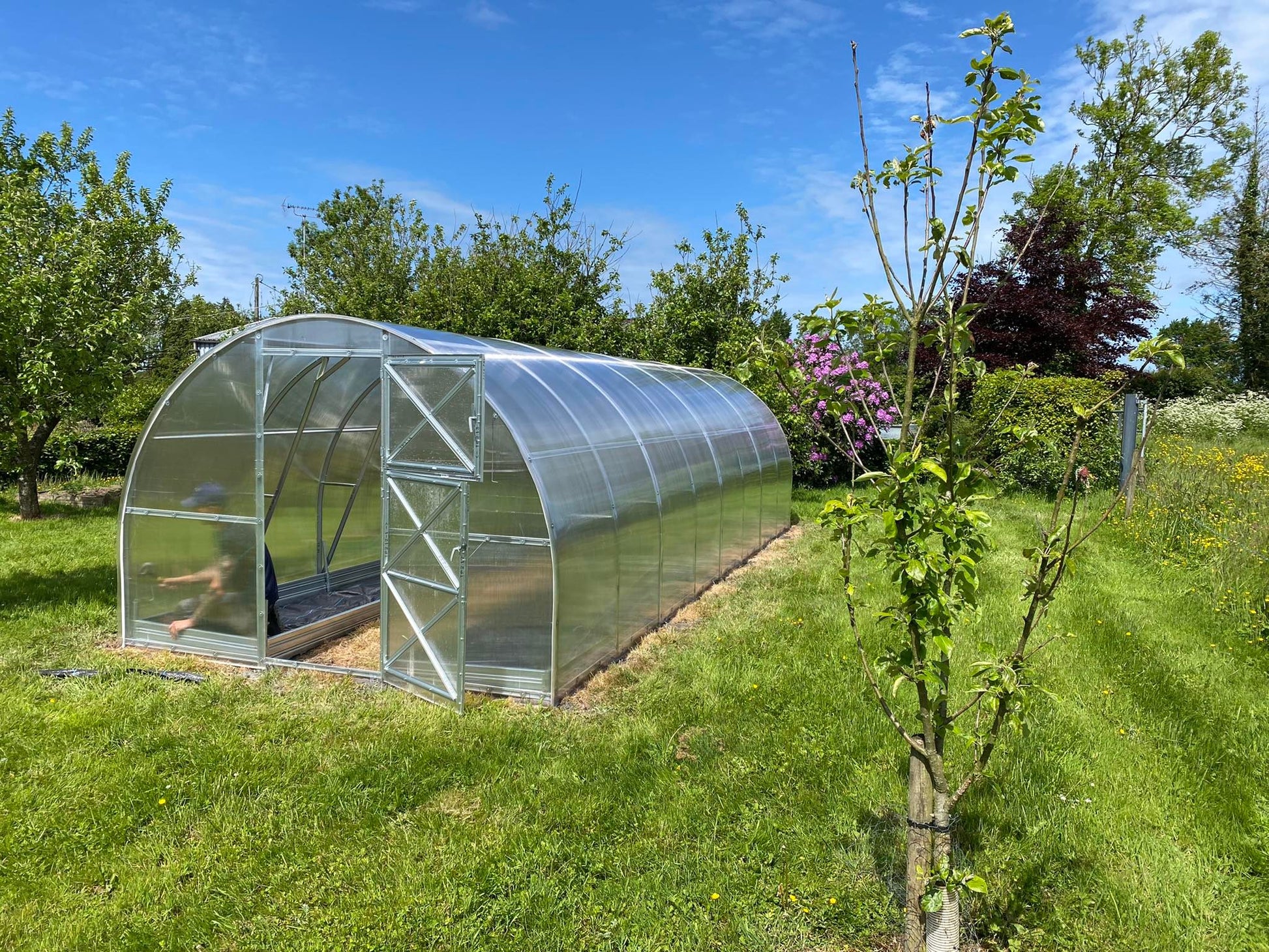 Greenhouse has two door openings and two small windows in opposite ends, the width of the doors is 805 mm.