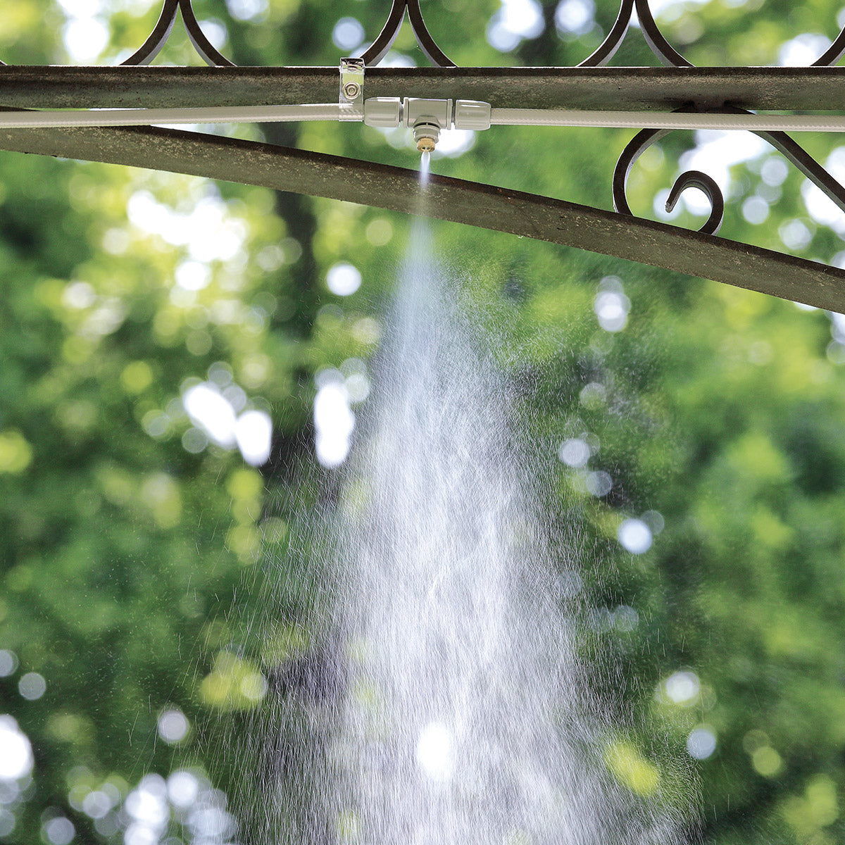 Misting kit ideal for cooling down outdoor spaces and greenhouse on hot summer days.