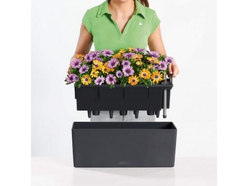 The balcony box from LECHUZA brings balcony dreams to life: Conveniently plant the liners on the ground or a potting table. Attach BALCONERA to railings or walls and place the potted liners into the planter. That’s it!