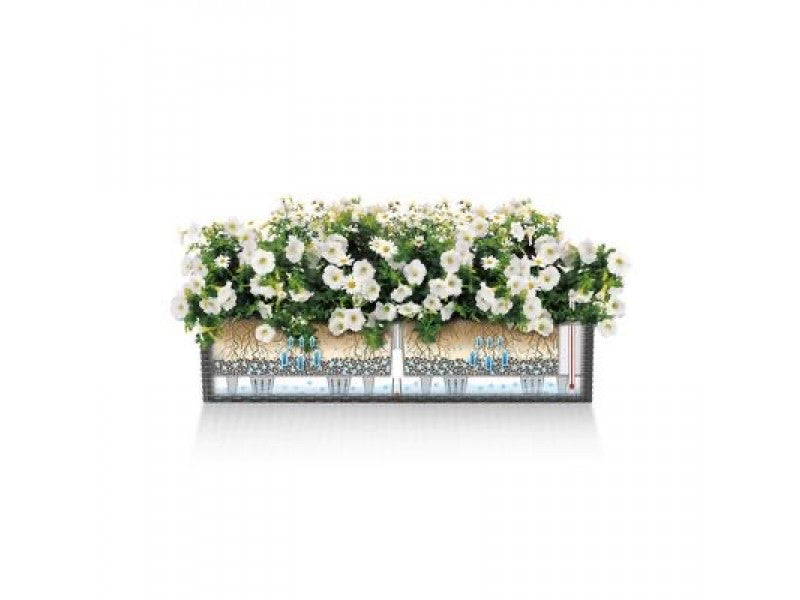 The balcony box from LECHUZA brings balcony dreams to life; conveniently plant the liners on the ground or a potting table. Attach BALCONERA to railings or walls and place the potted liners into the planter. That’s it!