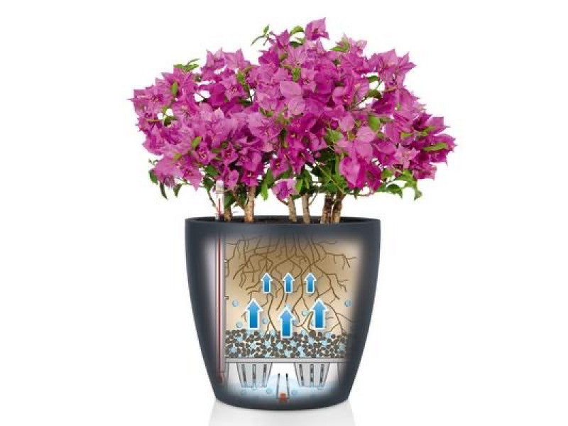 The CLASSICO Color family shows off an aesthetic appearance, high-quality design and smart functionality. Thanks to the reliable LECHUZA soil irrigation system, the plants can take as much water and nutrients as and when they need it and, in outdoor areas, the removable bottom screw protects against waterlogging in heavy rain.