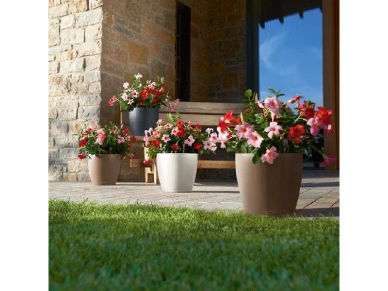 The tastefully simple design and the silky matt surface in the harmonious colours white, slate grey and nutmeg set the scene for indoor and outdoor plants, and make the plant pot an indispensable partner.