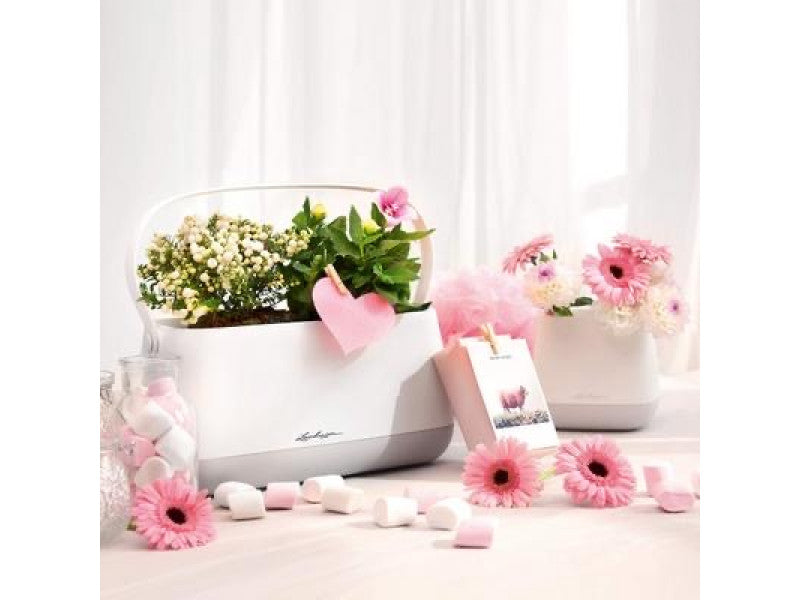 With harmonious pastel colours, matt surfaces and clean forms, the planters can be integrated into any interior. Small apartments can be quickly and easily decorated with the modern YULA collection. The purchased plants do not even have to be re-potted, but can remain in their grow pot, are provided with an embroidery and placed in the plant container or the plant bag. The irrigation system provides the plants with a constant supply of water and ensures that they are optimally supplied over a longer period of time. This means that constant watering is no longer necessary and nothing stands in the way of a weekend getaway - simply fill up the water reservoir and the plants take care of themselves for several days.