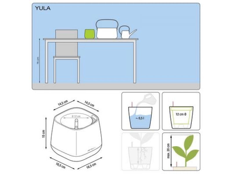 This makes the YULA containers ideal for anyone who wants to decorate their home with plants but does not have green fingers. Thanks to the simple sub-irrigation system, plants can be exchanged and redecorated at any time - perfect for a new, individual look every time! In the handy table pot format, there is room for the YULA family everywhere.