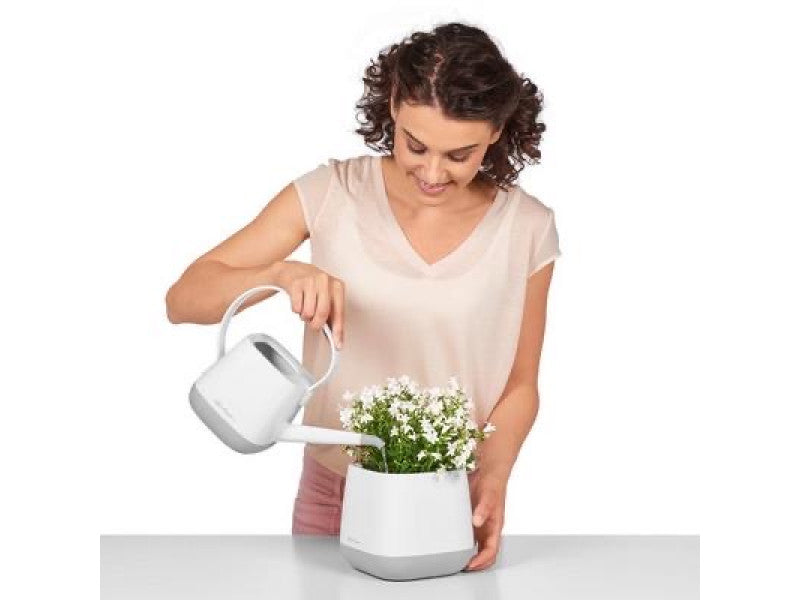 With harmonious pastel colours, matt surfaces and clean forms, the planters can be integrated into any interior. Small apartments can be quickly and easily decorated with the modern YULA collection. The purchased plants do not even have to be re-potted, but can remain in their grow pot, are provided with an embroidery and placed in the plant container or the plant bag. The irrigation system provides the plants with a constant supply of water and ensures that they are optimally supplied over a longer period of time. This means that constant watering is no longer necessary and nothing stands in the way of a weekend getaway - simply fill up the water reservoir and the plants take care of themselves for several days.