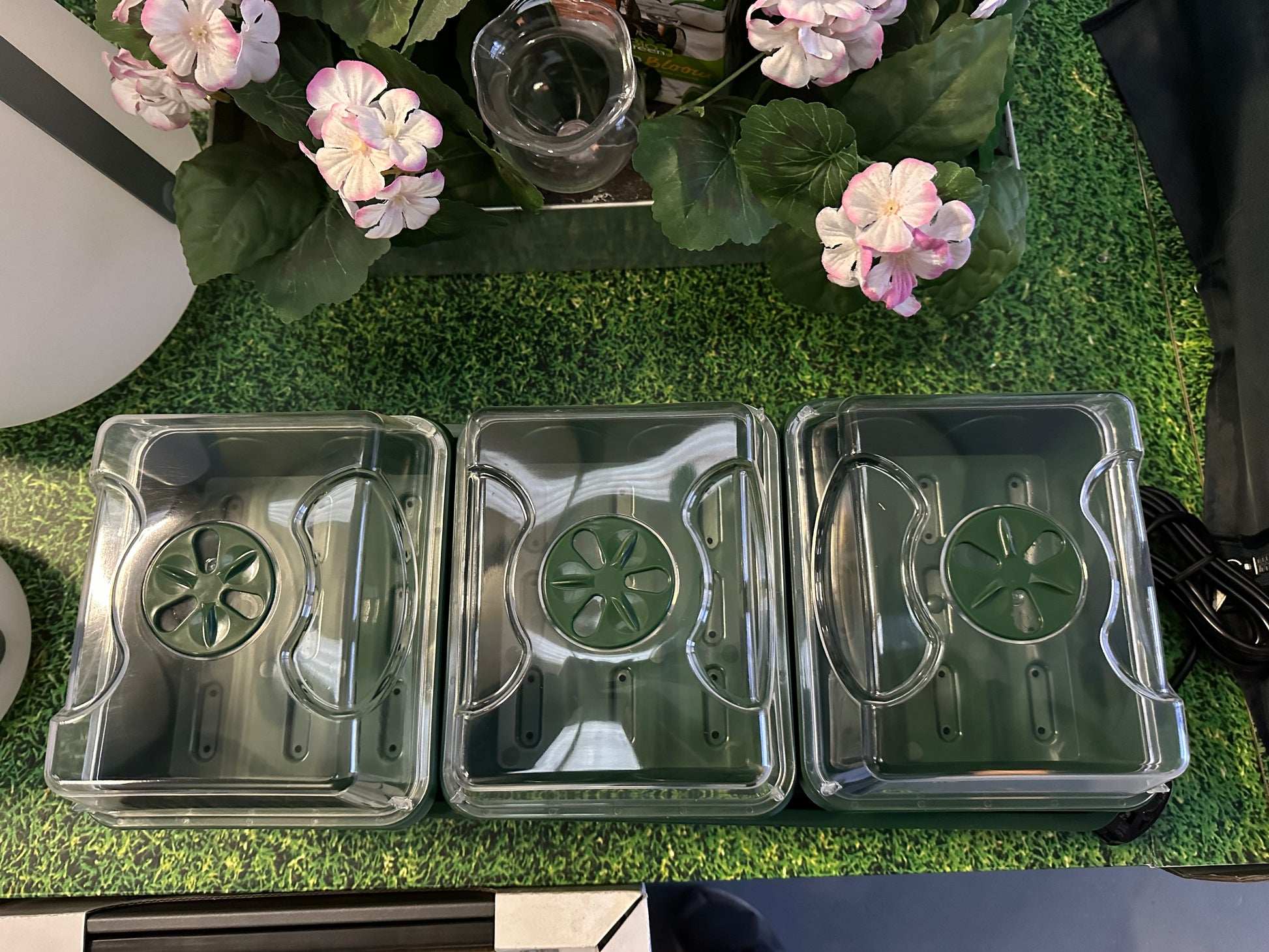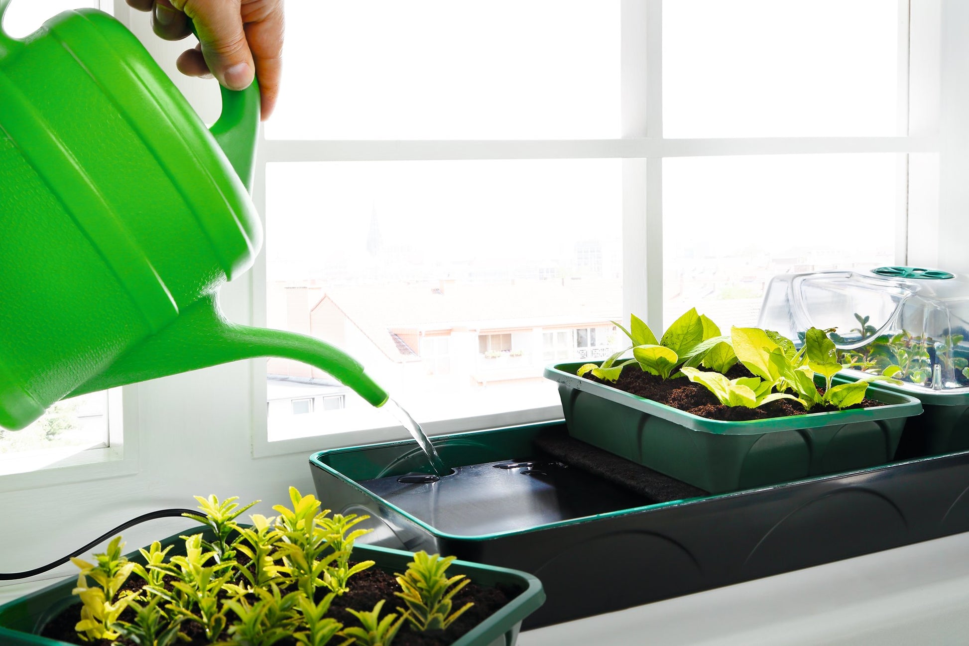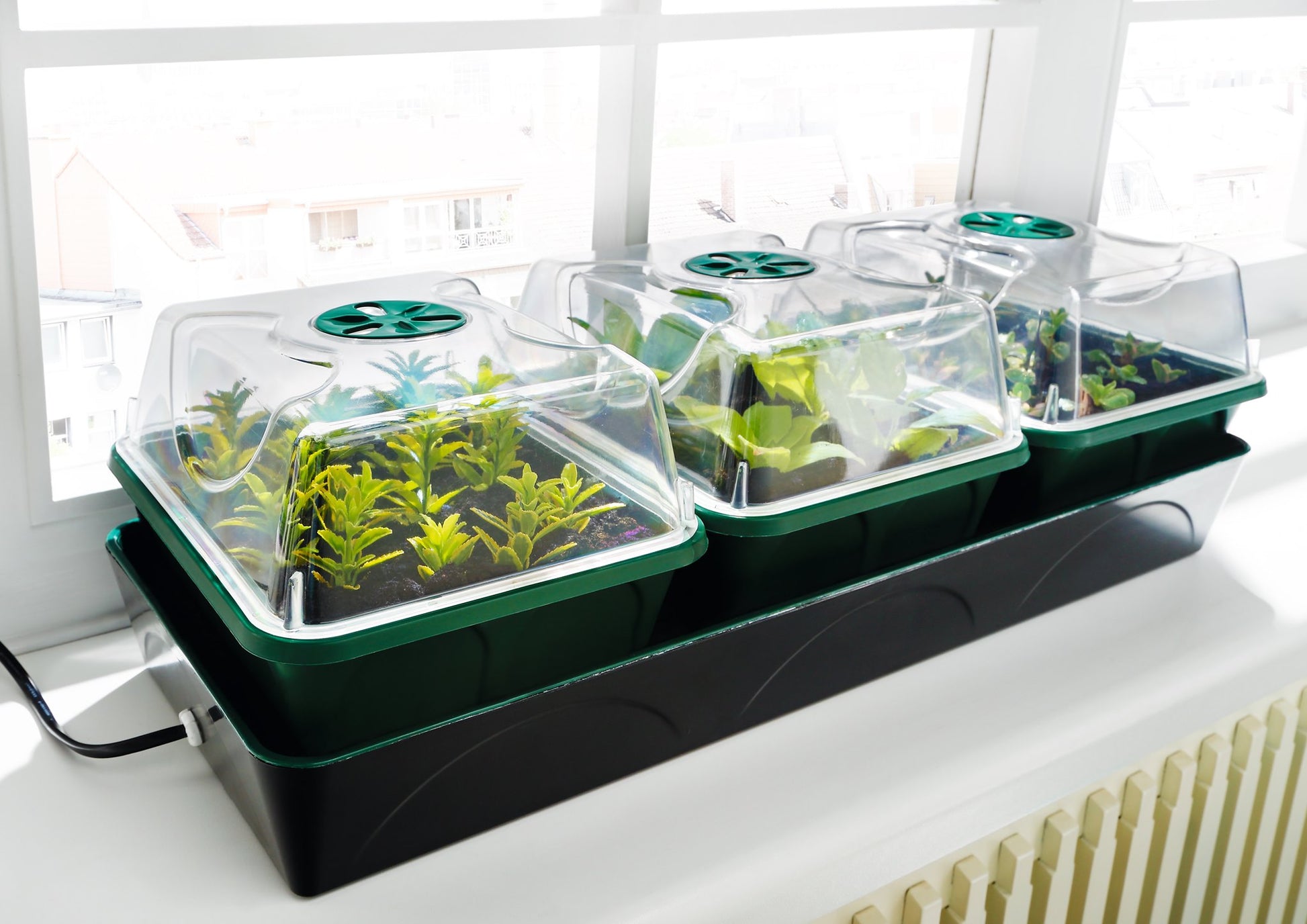 Cultivating plants with temperature control is the way to go: from eggplant to basil and tomato to zucchini - this practical and comfortable window sill greenhouse set with its three individual growth chambers provides the ideal environment for heat-loving plants. But that's not all: The growth chambers stand on an irrigation mat, which supplies the young plants with water and fertiliser. Each chamber can be individually ventilated, thus ensuring optimal cultivation conditions. Highly recommended for cuttings!