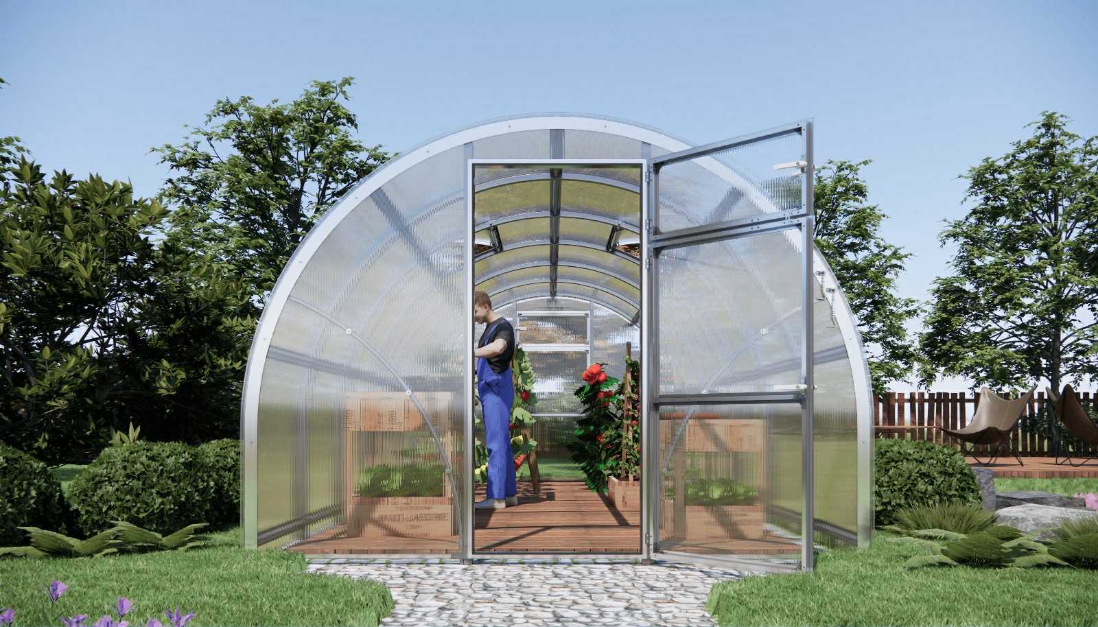 • Maximum Strength. The greenhouse withstands snow loads up to 160 kg/m² — a reliable solution for regions with cold climates.