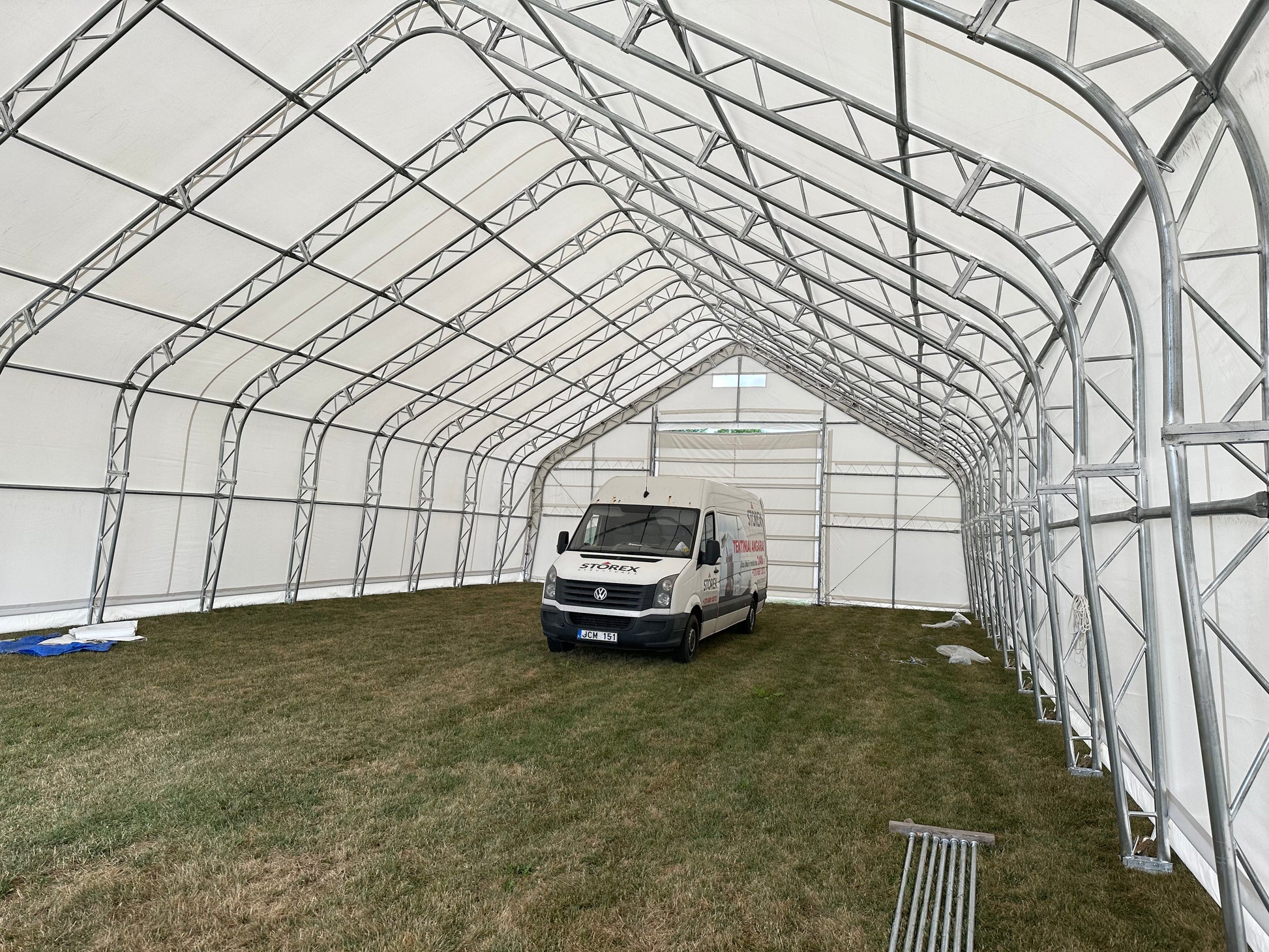 A well-maintained storage tent with a quality cover will serve you for a very long time. Warehouse tents are durable and reliable. The structure is coated and is protected against harsh weather conditions. If a storage tent is damaged, it’s easy to repair because of its simple structure. All of our products have been tested by time, and every new purchase comes with a warranty.
